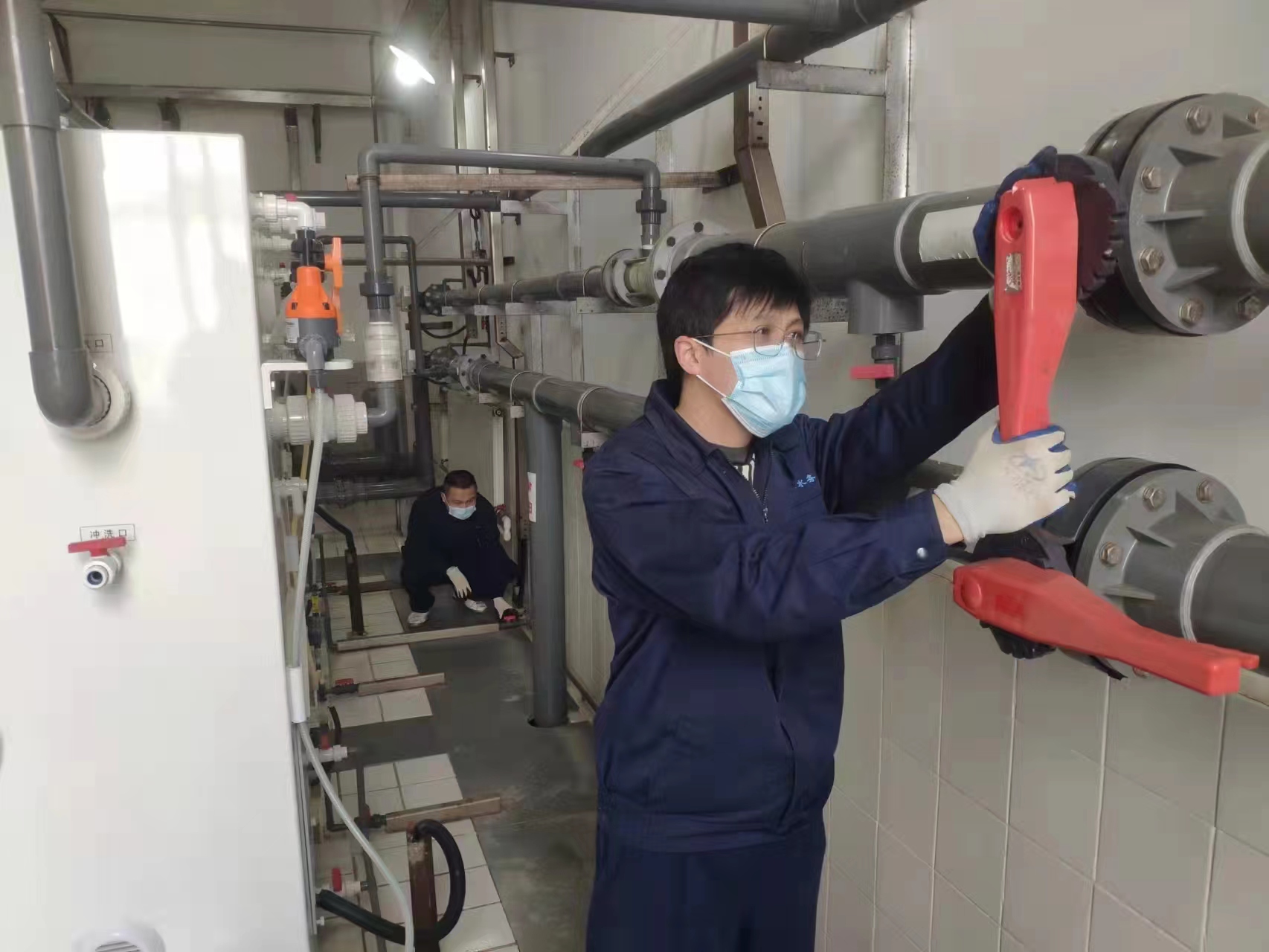 身兼數(shù)職勇?lián)敗?/strong>水務(wù)集團第六凈水廠負責(zé)市區(qū)60%的生活生產(chǎn)用水。水廠封閉后,在廠內(nèi)的七、八個員工維持運轉(zhuǎn),難度可想而知。面對困難,第六凈水廠黨支部沒有退縮,迎難而上,在崗黨員干部關(guān)鍵時刻站得出來,勇于擔(dān)責(zé),生產(chǎn)業(yè)務(wù)骨干沖鋒在前、做出表率。雖然每個人的工作時間延長了,但工作質(zhì)量絕不打折扣。在全力做好各自分內(nèi)工作的同時,兩名廠長身兼廚師和保潔員,凈化工身兼化驗員,運轉(zhuǎn)工變身為廚師,黨員、業(yè)務(wù)骨干兼職勤雜工,在大家的共同努力下,水廠運行安全平穩(wěn)有序。