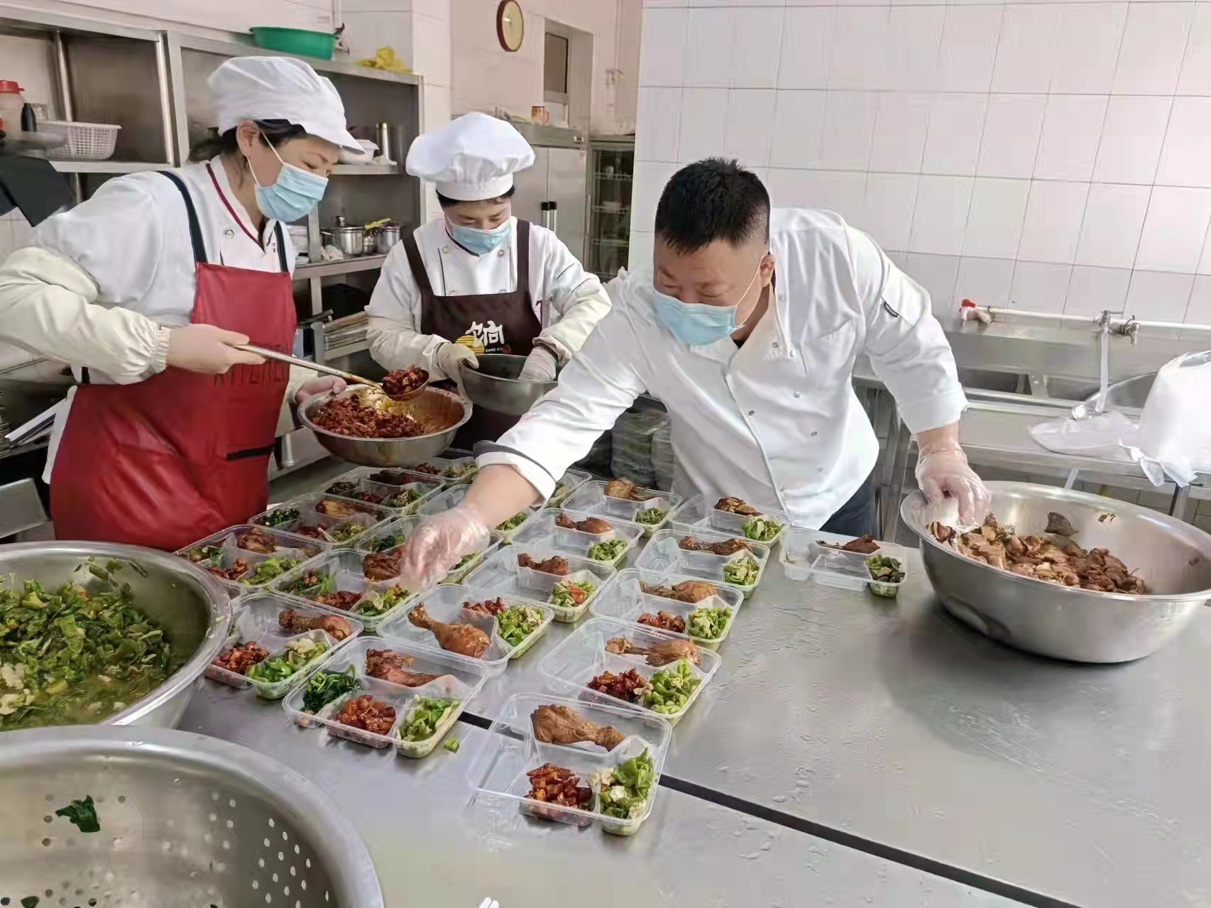 食堂班長(zhǎng)蔣玉斌說(shuō),“大家都在一線奮斗著,我們也不能放松,要用最擅長(zhǎng)的方式為抗擊疫情做力所能及的事?!痹谒膸ьI(lǐng)下,食堂班有需要照顧92歲高齡老父親依然堅(jiān)持在崗的董玥同志,有將幼小的孩子交給年邁的父母照看的王迎華同志,還有自身傷病卻依舊堅(jiān)守崗位的于銳同志,他們每天24小時(shí)不離崗,舍小家顧大家,在保障基層一線職工營(yíng)養(yǎng)均衡、葷素搭配、水果酸奶充足供應(yīng)的基礎(chǔ)上及時(shí)調(diào)整菜譜,默默用實(shí)際行動(dòng)為疫情防控工作貢獻(xiàn)自身力量。