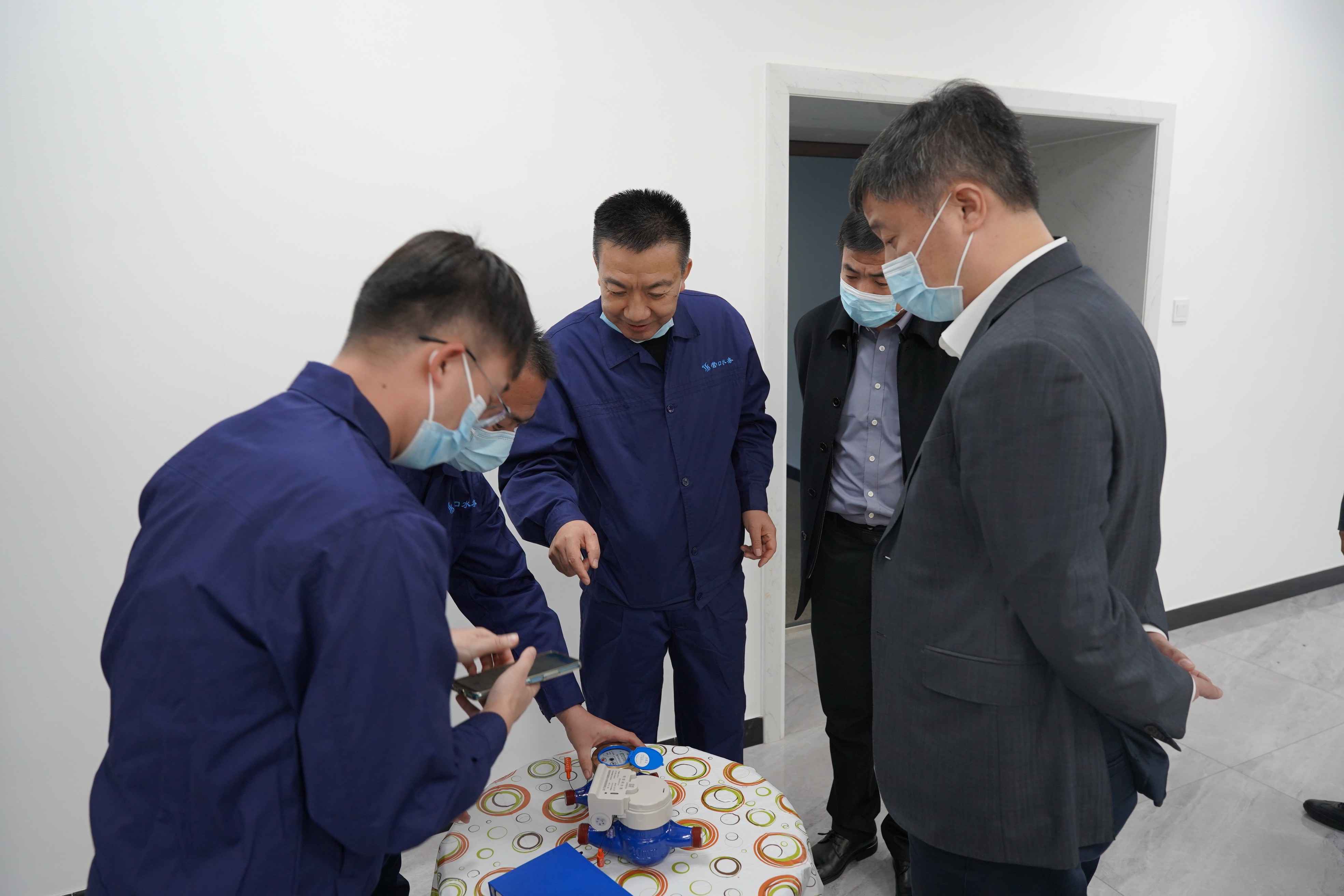 調(diào)研現(xiàn)場,水務(wù)集團黨委書記、董事長張業(yè)維向市領(lǐng)導(dǎo)詳細匯報了智慧水務(wù)建設(shè)及使用情況,對水質(zhì)檢測點、漏損控制分區(qū)計量、手機抄表等進行了講解,并現(xiàn)場用手機演示了“水務(wù)通”、“智水移動”兩款A(yù)PP的操作過程及實用功能。