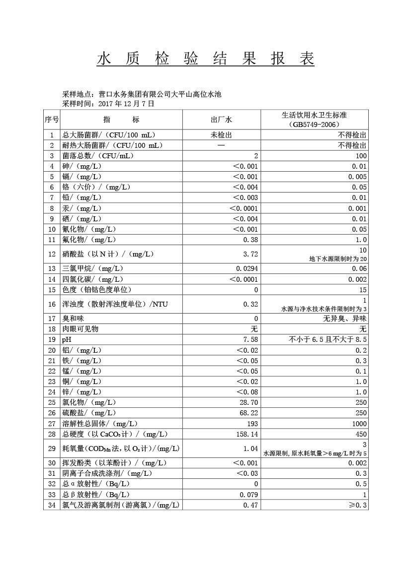 水質(zhì)報(bào)告